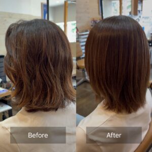 中性域での施術により、髪の過度な軟化を防ぎ、負担をかけずにストレートを実現。ダメージを最小限に抑えながら、自然な艶とまとまりのある髪へ導きます。