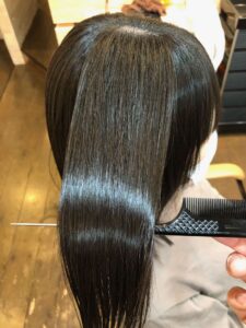 クセを伸ばした形をしっかり固定する重要な工程。艶やかで扱いやすい状態を長持ちさせます。